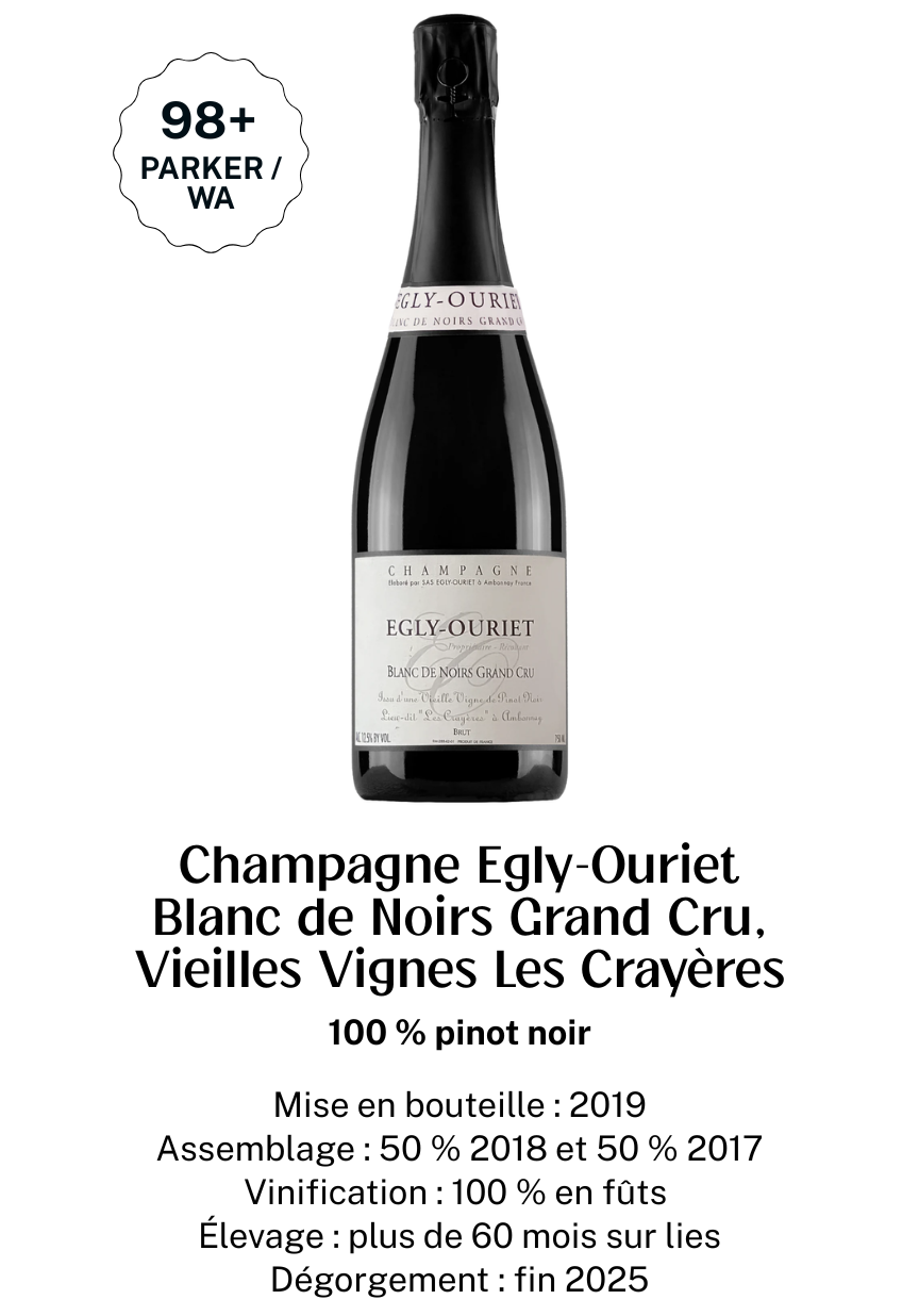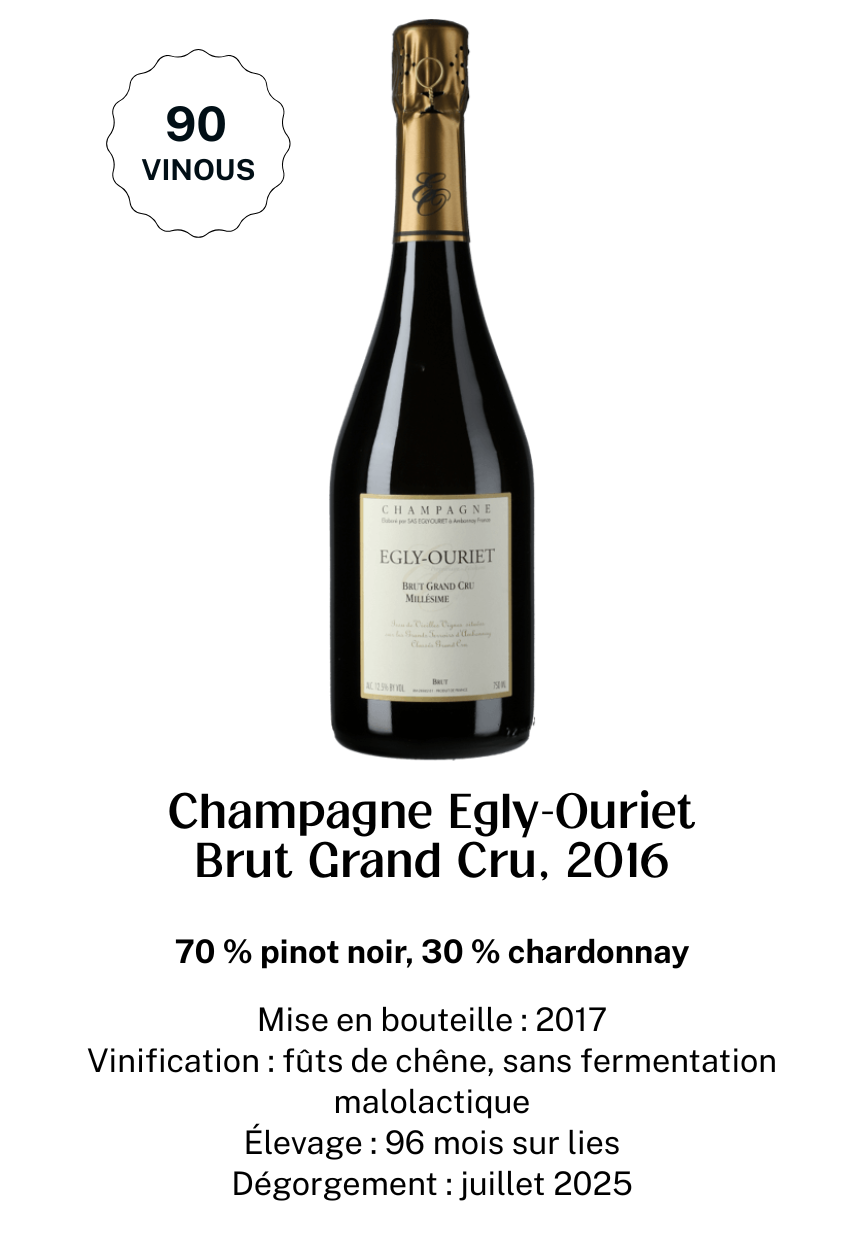“Aussi vineux et concentrés qu'harmonieux et élégants, ces vins occupent une place importante dans l'histoire récente de la Champagne. Si la région produit aujourd'hui des vins dignes des plus grands vins mondiaux et si les petits vignerons établissent désormais les normes qualitatives dans une région longtemps dominée par les grands négociants, Francis Egly en doit une grande partie du mérite.”