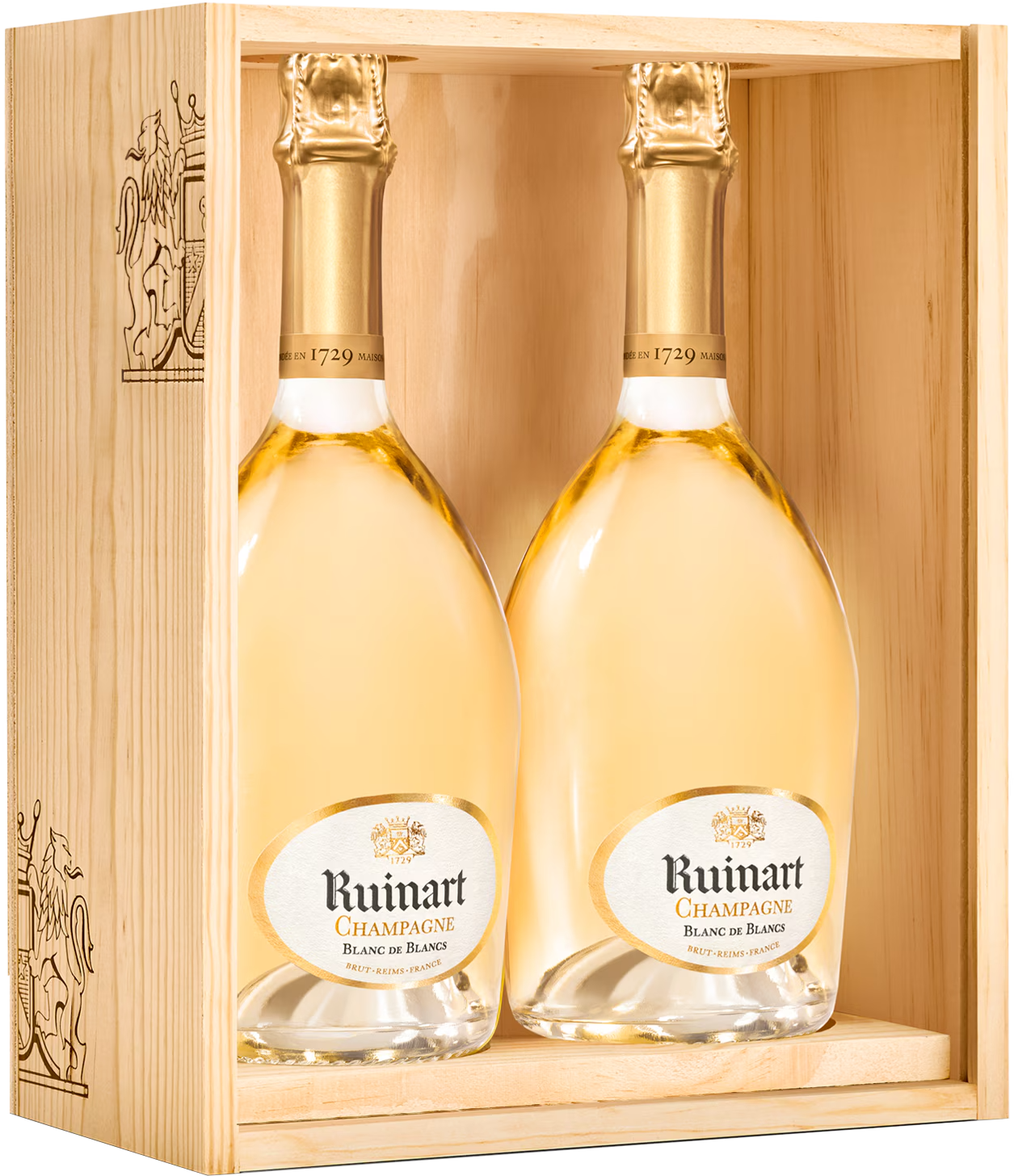 Maison emblématique fondée en 1729 à Reims, Ruinart est considérée comme la plus ancienne maison de Champagne. Son identité repose sur l’élégance, la pureté et la valorisation du Chardonnay, cépage signature qui façonne la finesse de ses cuvées. Située au cœur de la Champagne, la maison cultive un style reconnaissable, marqué par la fraîcheur, la précision aromatique et une grande maîtrise de l’assemblage. Le Coffret Duo Blanc de Blancs illustre parfaitement ce savoir-faire, offrant l’expression la plus lumineuse du chardonnay champenois. Par son raffinement et son intensité, il incarne tout le prestige de Ruinart.